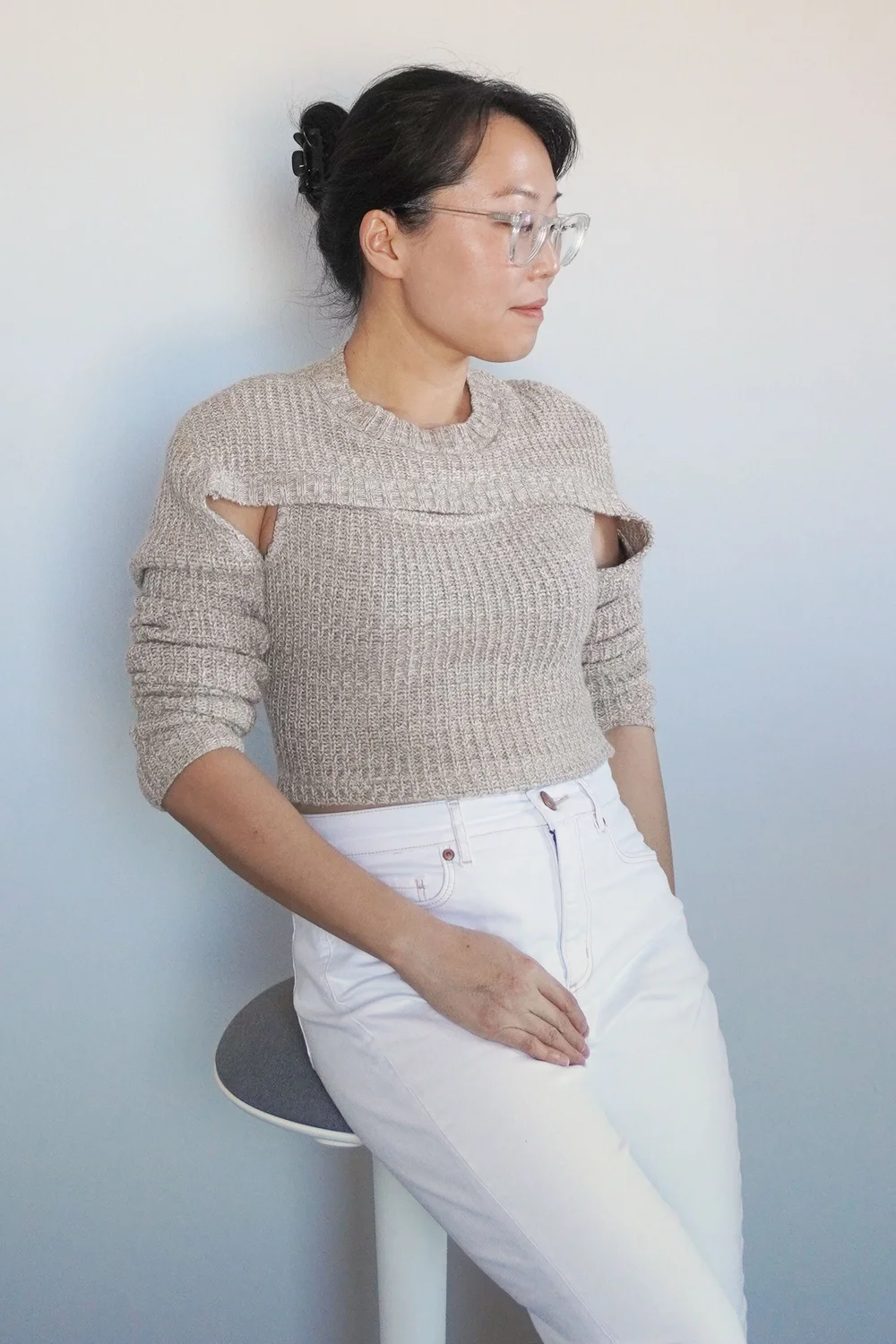 How To Refashion An Old Sweater Into A Cropped Cardigan Set Sabrina Lee Sewing And Thrifting Inspiration
